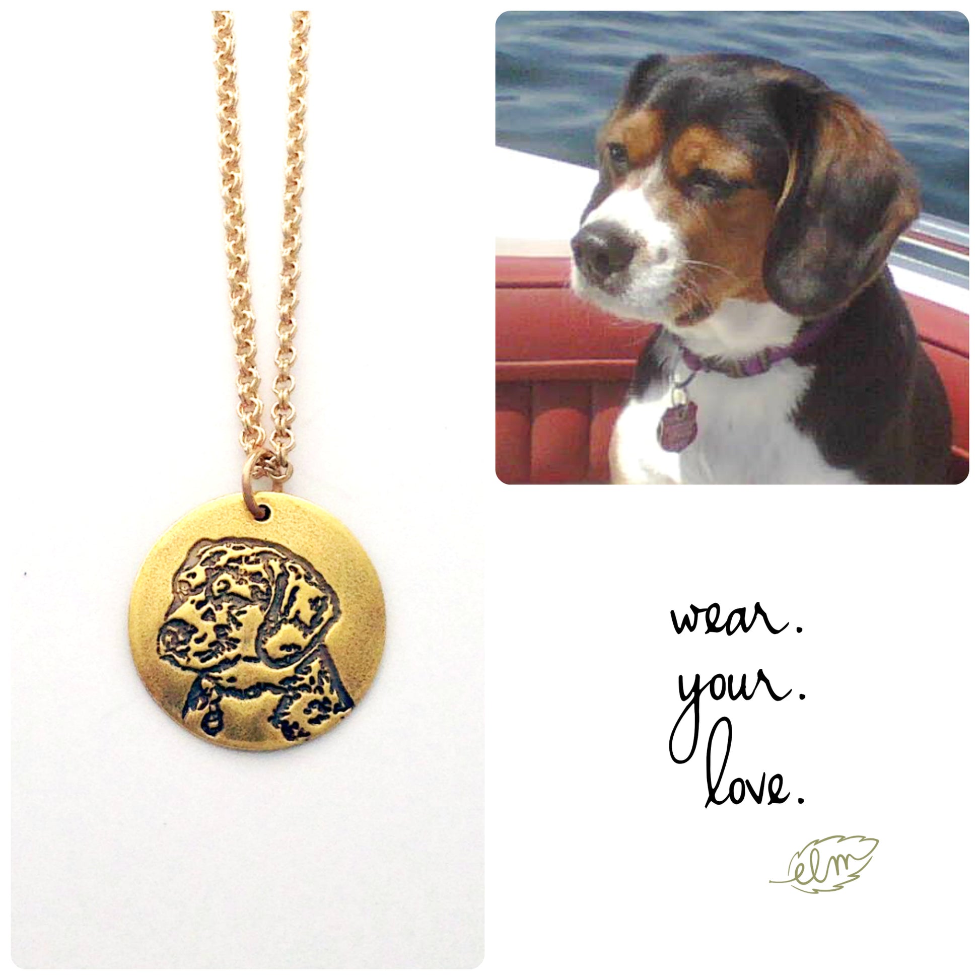 Once you purchase a piece of pet portrait jewelry, please email me several of your favorite photographs (and tell me a story or two about your pet!). I’ll turn your photo into a simple outline and then into a stamp, which is what I will use to texture the metal with your pet’s image. You will receive a proof of the outline before I do any work in metal, which gives you the opportunity to request any tweaks or edits.